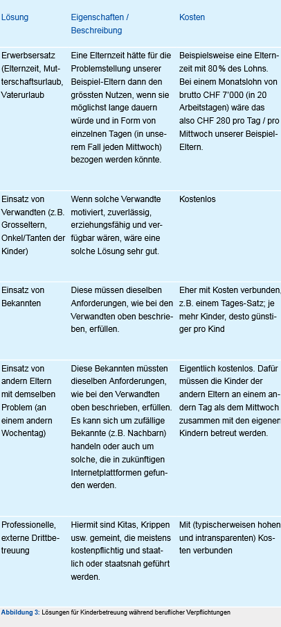 Die Tabelle Abbildung 3 zeigt dafür einige mögliche Lösungen auf, die sich notabene nicht gegenseitig