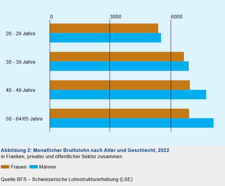 - In der Altersgruppe von 40 bis 49 Jahren beträgt die Lohneinbusse monatlich ca. CHF 1'500