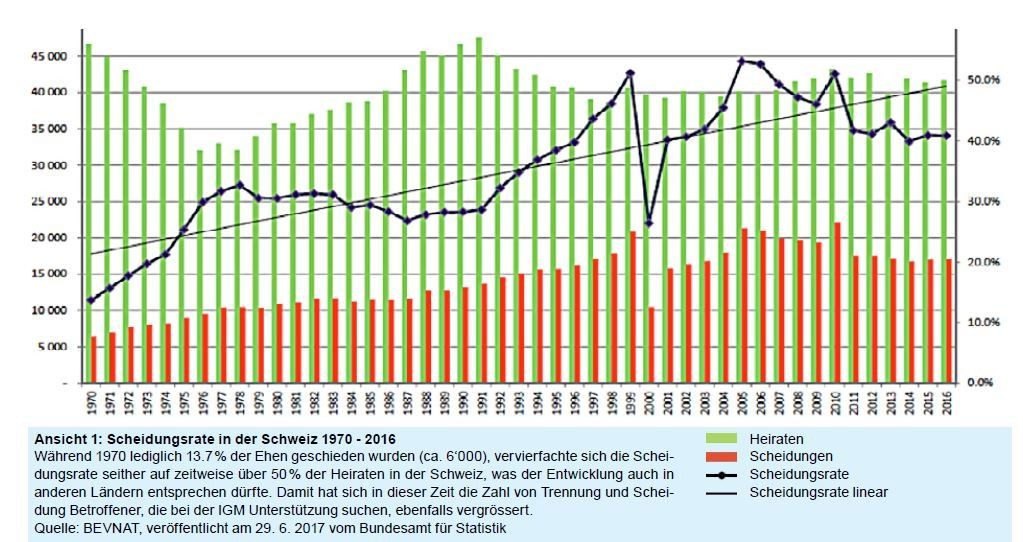 Als Beratungsorganisation nimmt die IGM trotz ihrem geringen Bekanntheitsgrad eine „ansehnliche“ Stellung ein und vermag jährlich ca. 140 Neumitglieder anzuziehen. Von den rund 17’000 Scheidungen pro Jahr laufen ca. 90 % relativ problemlos und einvernehmlich ab. Somit müssen jedes Jahr ca. 1‘700 Scheidungen als problematisch eingestuft werden.